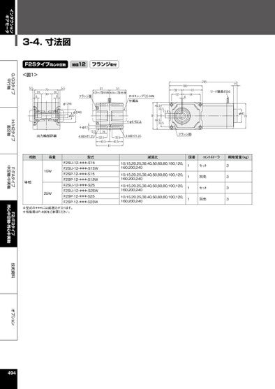 インダクションギアモータG/G3タイプ平行軸H/H2タイプ直交軸F/FAタイプ中空軸・中実軸F2/F3タイプ同心中空軸・同心中実軸技術資料オプション3-4.⼨法図F2Sタイプ同心中空軸軸径12フランジ取付<図1>5.520870302085.551ホゴキャップ取り付け時51ホゴキャップ取り付け時フランジ面φ12H8φ39H8φ204-φ8.512.54-M8×P1.252032.540.532.540.58139321004615420511リード線長さ300ホゴキャップF2S-MINI付属品40.533.513.88140.533.54-φ6.4以上4-M8×P1.25フランジ面φ4076型式F2SU-12-***-S15F2SU-12-***-S15WF2SP-12-***-S15F2SP-12-***-S15WF2SU-12-***-S25F2SU-12-***-S25WF2SP-12-***-S25F2SP-12-***-S25W減速比図番コントローラ概略質量(kg)10,15,20,25,30,40,50,60,80,100,120,160,200,24010,15,20,25,30,40,50,60,80,100,120,160,200,24010,15,20,25,30,40,50,60,80,100,120,160,200,24010,15,20,25,30,40,50,60,80,100,120,160,200,2401111セット別売セット別売3333出力軸部詳細相数容量単相15W25W※型式の***には減速比が入ります。※性能表はP.490をご参照ください。494