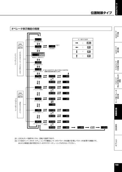 IPMギアモータオプション技術資料制御部仕様モータ部・ブレーキ部仕様F3タイプ同心中空軸・同心中実軸F/FAタイプ中空軸・中実軸H2タイプ直交軸G3タイプ平行軸キー操作の説明(回転速度表示)(注1)(正転選択)(逆転選択)ALMDRVDRVREVFOUT電源投入(DRV点灯)ESCLORERESETENTERRUNSTOP(出力電流表示)※“XX”と示されているところは,C1000では(出力トルク表示)実際の設定値を表示します。(モニタ表示)(ベリファイ機能)(セットアップモード)(パラメータ設定モード)(オートチューニング)(注2)XXXXXXXXXXXXXXXXXXXXXXXXXXXXXXXXXXXXXXXXXXXXXXDRVランプ点灯中*RUNを押すとモータが回転します。ドライブモードDRVランプ消灯中*運転はできません。プログラムモードオペレータ表示機能の階層注1.LOCALモード選択中にのみ、逆転)を選択できます。注2.C1000インバータのオートチューニングの機能は、モータのパラメータを自動で計測しパラメータを変更する機能です。あらかじめ最適な値が設定されていますのでオートチューニングは行わないでください。789