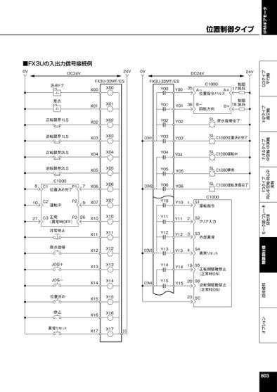 IPMギアモータオプション技術資料制御部仕様モータ部・ブレーキ部仕様F3タイプ同心中空軸・同心中実軸F/FAタイプ中空軸・中実軸H2タイプ直交軸G3タイプ平行軸■FX3Uの入出力信号接続例0VDC24V24V0VDC24VFX3U-32MT/ESFX3U-32MT/ESY00Y0035A-C1000位置指令パルスA+Y01Y0136B-回転方向24V制限抵抗17制限抵抗18B+原点復帰完了C1000位置決め完了C1000運転中C1000異常C1000運転準備完了SLSLSLSLSL近点ドグ原点正転限界1LS逆転限界1LS正転限界2LS逆転限界2LS8C1C1000位置決め完了P110C2運転中P279X00X01X02X03X04X05X06X0727C3正常(異常時OFF)P3非常停止原点復帰JOG+JOG-位置決め停止異常リセット26X10X11X12X13X14X15X16X17X00X01X02X03X04X05X06X07X10X11X12X13X14X15X16X17Y02Y02COM1Y03Y03Y04Y04Y05Y05COM2Y06Y06Y10Y10Y11Y11Y12Y12COM3Y13Y131234Y14Y1419COM4Y1520Y15C1000S1運転指令S2クリア入力S3外部異常S4異常リセットS5正転側駆動禁止(正常時ON)S6逆転側駆動禁止(正常時ON)23SCS/S803