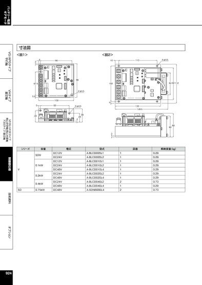 VG/APGタイプ平行軸VHタイプ直交軸VF3S/VF3Fタイプ同心中空軸・同心中実軸F3Sタイプ/直交軸制御部仕様技術資料オプションバッテリー電源ギアモータ寸法図<図1>5390<図2>101104-φ4.567.55.553310082962-φ4.52-φ4.53825410253130149.564921126860シリーズ容量電圧50W0.1kW0.2kW0.4kW0.75kWDC12VDC24VDC12VDC24VDC48VDC24VDC48VDC24VDC48VDC48VVSD型式A-BLCD005L1A-BLCD005L2A-BLCD010L1A-BLCD010L2A-BLCD010L4A-BLCD020L2A-BLCD020L4A-BLCD040L2A-BLCD040L4A-SDNB080L41111111212図番概略質量(kg)0.290.290.290.290.290.290.290.730.290.73924