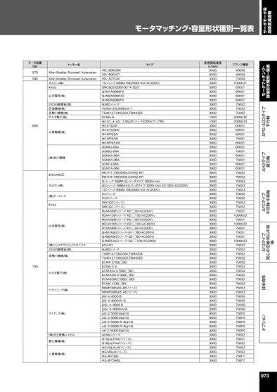 モータマッチング・容量形状種別一覧表オプション技術資料AF3タイプ同心中空軸・同心中実軸AFCタイプ中空軸・中実軸AH2タイプ直交軸APG/AG3タイプ平行軸モータマッチング・容量形状種別一覧表サーボモータ用高精度減速機メーカー名タイプモータ容量(W)570590AllenBradley/RockwellAutomationAllenBradley/RockwellAutomationオムロン(株)Kinco山洋電気(株)CKD日機電装(株)芝浦機械(株)多摩川精機(株)デルタ電子(株)600三菱電機(株)(株)安川電機INOVANCEオムロン(株)(株)キーエンスKinco山洋電気(株)(株)ジェイテクトエレクトロニクスCKD日機電装(株)多摩川精機(株)750デルタ電子(株)パナソニック(株)ファナック(株)(株)日立産機システム富士電機(株)三菱電機(株)VPL-B0633MVPL-B0633TVPL-A0753C1SシリーズR88M-1M(2000r/minAC400V)SMC60S-0060-30**K-5DS*GAM1A6060F0GAM2A6060V0GAM2A6060F0NA80シリーズVLBSV-ZA(3000min-1)TS4613,TSM3303,TSM4303ECMA-GHK-ST_4_W(□130)(J5シリーズ)(200Vアンプ時)HK-KT63WHK-KT634WHK-MT63WHK-MT63WHK-MT63VWSGMXJ-06ASGMXJ-06ASGMXA-06ASGMXA-06ASGM7J-06ASGM7A-06AMS1H1-75B30CB-XXXXZ-INTMS1H4-75B30CB-XXXXZ-INTGシリーズR88M-G(シリンダタイプ3000r/min)G5シリーズR88M-K(シリンダタイプ3000r/minAC100V・AC200V)1SシリーズR88M-1M(3000r/minAC200V)SVシリーズSV2シリーズSMC(G2シリーズ)SMC(G1シリーズ)R2AA08(Rシリーズ・R2・□80・AC200V)R2AA10(Rシリーズ・R2・□100・AC200V)R5AA08(Rシリーズ・R5・□80・AC200V)R2CA10(Rシリーズ・R2・□100・AC400V)R1AA08(Rシリーズ・R1・□80・AC200V)GAM1A8(Gシリーズ・G1・□80・AC200V)GAM2A8(Gシリーズ・G2・□80・AC200V)GAM2AA(Gシリーズ・G2・□100・AC200V)KSV-B3NA80シリーズTS4614,TSM3304,TSM4304TS4613,TSM3303,TSM4303ECMA-C*08(□80)ECMA-C-HECM-A3L-C*080(□80)ECM-A3H-C*080(□80)ECM-B3M-C*080(□80)ECMA-J*08(□80)MSMF(MINASA6シリーズ)MHMF(MINASA6シリーズ)ββββαααααADMAシリーズGYS(ALPHA7シリーズ)GYB(ALPHA7シリーズ)HG-KR(J4,JNシリーズ)HG-MR(J4シリーズ)HG-JR73(B)HG-JR734(B)iS4/4000-BiS4/4000HV-BiSc4/4000-BiSc4/4000HV-BiS2/5000-B(φ10)iS2/6000-B(φ10)iS2/5000HV-B(φ10)iS2/6000HV-B(φ10)iF2/5000-B(φ10)定格回転速度(r/min)650065003300200030003000300030003000300030001000100030003000300030003000300030003000300030003000300030003000300030003000300030003000300030003000300030003000300030003000300030003000300030003000300030003000300030003000300030003000400060004000600040003000300030003000300030003000フランジ種別400S6400S6750S81000K21600S1600S1600S1600S1750S2750S2750S22000K322000K33600S1600S1600S1750S1600S1600S1750S1600S1750S1600S1600S1750S2750S2750S3750S3750S3750S2750S2750S2750S2750S11000K22750S11000K22750S1750S1750S11000K22750S2750S2750S2750S2750S2750S2750S2750S2750S2750S2750S3750S3750S6750S6750S6750S6750F6750F6750F6750F6750F6750S2750S1750S2750S2750S2750F7750F7973
