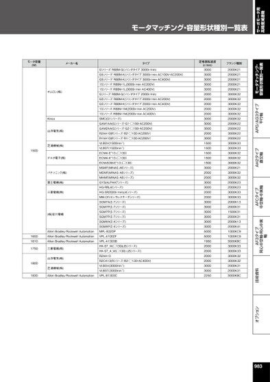 モータマッチング・容量形状種別一覧表オプション技術資料AF3タイプ同心中空軸・同心中実軸AFCタイプ中空軸・中実軸AH2タイプ直交軸APG/AG3タイプ平行軸モータマッチング・容量形状種別一覧表サーボモータ用高精度減速機モータ容量(W)メーカー名タイプオムロン(株)Kinco山洋電気(株)芝浦機械(株)デルタ電子(株)パナソニック(株)富士電機(株)三菱電機(株)(株)安川電機AllenBradley/RockwellAutomationAllenBradley/RockwellAutomationAllenBradley/RockwellAutomation三菱電機(株)山洋電気(株)芝浦機械(株)150016001610175018001830AllenBradley/RockwellAutomationGシリーズR88M-G(シリンダタイプ3000r/min)G5シリーズR88M-K(シリンダタイプ3000r/minAC100V・AC200V)G5シリーズR88M-K(シリンダタイプ3000r/minAC400V)1SシリーズR88M-1L(3000r/minAC200V)1SシリーズR88M-1L(3000r/minAC400V)GシリーズR88M-G(シリンダタイプ2000r/min)G5シリーズR88M-K(シリンダタイプ2000r/minAC200V)G5シリーズR88M-K(シリンダタイプ2000r/minAC400V)1SシリーズR88M-1M(2000r/minAC200V)1SシリーズR88M-1M(2000r/minAC400V)SMC(G1シリーズ)GAM1AA(Gシリーズ・G1・□100・AC200V)GAM2AA(Gシリーズ・G2・□100・AC200V)R2AA10(Rシリーズ・R2・□100・AC200V)R1AA10(Rシリーズ・R1・□100・AC200V)VLBSV(1500min-1)VLBST(1500min-1)ECMA-E*13(□130)ECMA-K*13(□130)ECM-B3M-E*13(□130)MSMF(MINASA6シリーズ)MDMF(MINASA6シリーズ)MHMF(MINASA6シリーズ)GYS(ALPHA7シリーズ)HG-RR(J4シリーズ)HG-SR2000r/min(J4シリーズ)MM-CF(センサレスサーボシリーズ)SGM7A(Σ-7シリーズ)SGM7P(Σ-7シリーズ)SGM7P(Σ-7シリーズ)SGM7P(Σ-7シリーズ)SGMXA(-Xシリーズ)SGMXP(-Xシリーズ)MPL-B320PVPL-A1002FVPL-A1303BHK-ST_W(□130)(J5シリーズ)HK-ST_4_W(□130)(J5シリーズ)R2AA13R2CA13(Rシリーズ・R2・□130・AC400V)VLBSV(3000min-1)VLBST(3000min-1)VPL-B1303C定格回転速度(r/min)3000300030003000300020002000200020002000300030003000200030001500150015001500150030002000200030003000200020003000300030003000300030005000500019502000200020002000300030002250フランジ種別2000K212000K212000K212000K212000K213000K323000K323000K323000K323000K322000K322000K222000K223000K222000K223000K333000K333000K323000K323000K322000K213000K323000K322000K232000K233000K333000K332000K132000K311500K312000K312000K132000K411000KC91000KC93000KBC3000K333000K333000K323000K322000K312000K313000KBC983