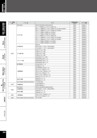 モータマッチング・容量形状種別一覧表APG/AG3タイプ平行軸AH2タイプ直交軸AFCタイプ中空軸・中実軸AF3タイプ同心中空軸・同心中実軸技術資料オプションサーボモータ用高精度減速機モータ容量(W)メーカー名INOVANCEオムロン(株)山洋電気(株)2000デルタ電子(株)パナソニック(株)富士電機(株)三菱電機(株)(株)安川電機AllenBradley/RockwellAutomation2400芝浦機械(株)INOVANCE山洋電気(株)(株)安川電機三菱電機(株)AllenBradley/RockwellAutomation250026002820タイプMS1H2-20C30CD-XXXXZ(-S4)-INTGシリーズR88M-G(シリンダタイプ3000r/min)G5シリーズR88M-K(シリンダタイプ3000r/minAC100V・AC200V)G5シリーズR88M-K(シリンダタイプ3000r/minAC400V)1SシリーズR88M-1L(3000r/minAC200V)1SシリーズR88M-1L(3000r/minAC400V)GシリーズR88M-G(シリンダタイプ2000r/min)G5シリーズR88M-K(シリンダタイプ2000r/minAC200V)G5シリーズR88M-K(シリンダタイプ2000r/minAC400V)1SシリーズR88M-1M(2000r/minAC200V)1SシリーズR88M-1M(2000r/minAC400V)R2AA13R2CA13(Rシリーズ・R2・□130・AC400V)R1AA10(Rシリーズ・R1・□100・AC200V)ECMA-C*10(□100)ECMA-E*13(□130)ECMA-J*10(□100)ECMA-K*13(□130)ECM-B3M-E*13(□130)MSMF(MINASA6シリーズ)MDMF(MINASA6シリーズ)MHMF(MINASA6シリーズ)GYS(ALPHA7シリーズ)HG-RR(J4シリーズ)HG-SR2000r/min(J4シリーズ)HK-ST_W(□130)(J5シリーズ)HK-ST_4_W(□130)(J5シリーズ)HK-ST_W(□176)(J5シリーズ)HK-ST_4_W(□176)(J5シリーズ)MM-CF(センサレスサーボシリーズ)SGM7A(Σ-7シリーズ)SGMXA(-Xシリーズ)TLP-A200-200VLBSV(3000min-1)VLBST(3000min-1)MS1H2-25C30CD-XXXXZ(-S4)-INTR1AA10(Rシリーズ・R1・□100・AC200V)SGM7A(Σ-7シリーズ)SGMXA(-Xシリーズ)HK-ST_4_W(□130)(J5シリーズ)HK-ST_W(□130)(J5シリーズ)VPL-B1303F定格回転速度(r/min)300030003000300030003000200020002000200020002000200030003000200030002000200030002000200030003000200020002000200020002000300030002000300030003000300030003000300030004000フランジ種別2000K132000K212000K212000K212000K212000K213000K323000K323000K323000K323000K323000K343000K342000K222000K223000K322000K223000K323000K322000K213000K323000K752000K232000K233000K753000K333000K333000K753000K753000K752000K132000K133000K753000K333000K333000K133000K223000K133000K133000K333000K333000KBC984