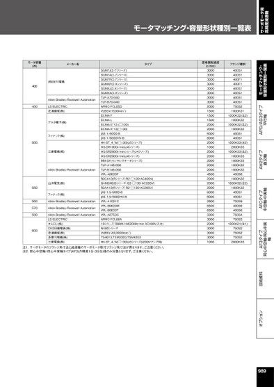 モータマッチング・容量形状種別一覧表オプション技術資料AF3タイプ同心中空軸・同心中実軸AFCタイプ中空軸・中実軸AH2タイプ直交軸APG/AG3タイプ平行軸モータマッチング・容量形状種別一覧表サーボモータ用高精度減速機モータ容量(W)メーカー名タイプ400450500550560570590600(株)安川電機AllenBradley/RockwellAutomationLSELECTRIC芝浦機械(株)デルタ電子(株)ファナック(株)三菱電機(株)AllenBradley/RockwellAutomation山洋電気(株)ファナック(株)AllenBradley/RockwellAutomationAllenBradley/RockwellAutomationAllenBradley/RockwellAutomationLSELECTRICオムロン(株)CKD日機電装(株)芝浦機械(株)多摩川精機(株)三菱電機(株)iS1/6000-BiS1/6000HV-BSGM7J(Σ-7シリーズ)SGM7A(Σ-7シリーズ)SGM7P(Σ-7シリーズ)SGMXP(-Xシリーズ)SGMXJ(-Xシリーズ)SGMXA(-Xシリーズ)TLP-A70-040TLP-B70-040APMC-FCL05DVLBSV(1500min-1)ECMA-FECMA-LECMA-E*13(□130)ECMA-K*13(□130)ββHK-ST_4_W(□130)(J5シリーズ)HG-SR1000r/min(J4シリーズ)HG-SR2000r/minシリーズ(J4シリーズ)HG-SR2000r/min(J4シリーズ)MM-CF(センサレスサーボシリーズ)TLP-A145-050TLP-B145-050VPL-A0633FR2CA13(Rシリーズ・R2・□130・AC400V)GAM2AB(Gシリーズ・G2・□130・AC200V)R2AA13(Rシリーズ・R2・□130・AC200V)ββVPL-A1001CVPL-B0633MVPL-B0633TVPL-A0753CAPMC-FCL06A1SシリーズR88M-1M(2000r/minAC400V入力)NA80シリーズVLBSV-ZA(3000min-1)TS4613,TSM3303,TSM4303HK-ST_4_W(□130)(J5シリーズ)(200Vアンプ時)iS1.5/6000-BiS1.5/6000HV-B注1.サーボモータのフランジ角寸法と減速機のサーボモータ取付フランジ角寸法が異なります。ご注意ください。注2.同心中空軸/同心中実軸タイプ(AF3)の精度1分・3分仕様のみ対象となります。ご注意ください。定格回転速度(r/min)300030003000300030003000300030002000150015001500200020006000600020001000200020002000200020004500200020002000600060002800650065003300300020003000300030001000フランジ種別400S1400S1400F1400F1400S1400S1400S1400S1750S21000K311000K32(注2)1000K321000K32(注2)1000K32400S1400S11000K33(注2)2000K331000K33(注2)1000K331000K331000K321000K32400S61000K321000K32(注2)1000K32400S1400S1750S9400S6400S6750SA750S21000K21(注1)750S2750S2750S22000K33989