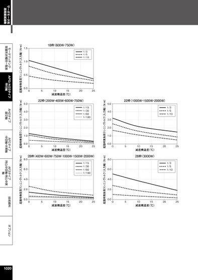 サーボモータ用高精度減速機モータマッチング・容量形状種別一覧表APG/AG3タイプ平行軸AH2タイプ直交軸AFCタイプ中空軸・中実軸AF3タイプ同心中空軸・同心中実軸技術資料オプション22枠(1000W・1500W・2000W)1/31/51/105.04.03.02.01.020251015減速機温度(℃)28枠(3000W)1/31/51/100.0058.06.04.02.00.0051015減速機温度(℃)2025起動時無負荷ランニングトルク(入力軸)N・m)起動時無負荷ランニングトルク(入力軸)(N・m)18枠(600W・750W)1/31/51/1051015減速機温度(℃)202522枠(200W・400W・600W・750W)1/151/301/601/1001.51.00.50.005.04.03.02.01.00.0051015減速機温度(℃)202528枠(400W・600W・750W・1000W・1500W・2000W)1/151/301/601/1008.06.04.02.00.0051015減速機温度(℃)2025起動時無負荷ランニングトルク(入力軸)N・m)起動時無負荷ランニングトルク(入力軸)N・m)起動時無負荷ランニングトルク(入力軸)(N・m)1020