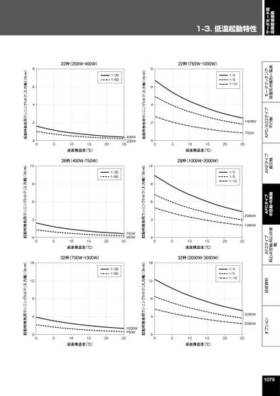 1-3.低温起動特性オプション技術資料AF3タイプ同心中空軸・同心中実軸AFCタイプ中空軸・中実軸AH2タイプ直交軸APG/AG3タイプ平行軸モータマッチング・容量形状種別一覧表サーボモータ用高精度減速機1/31/51/101000W750W510152025減速機温度(℃)28枠(1000W・2000W)1/31/51/10510152025減速機温度(℃)32枠(2000W・3000W)1/31/51/10510152025減速機温度(℃)2000W1000W3000W2000W1079864200129630016128400起動時無負荷ランニングトルク(入力軸)N・m)起動時無負荷ランニングトルク(入力軸)N・m)起動時無負荷ランニングトルク(入力軸)(N・m)1/301/60510152025400W200W減速機温度(℃)28枠(400W・750W)1/301/60750W400W510152025減速機温度(℃)32枠(750W・1000W)1/301/60510152025減速機温度(℃)1000W750W864200129630016128400起動時無負荷ランニングトルク(入力軸)N・m)起動時無負荷ランニングトルク(入力軸)N・m)起動時無負荷ランニングトルク(入力軸)(N・m)22枠(200W・400W)22枠(750W・1000W)