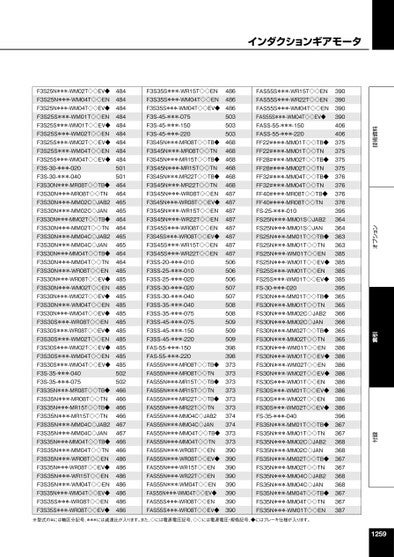 付録索引オプション技術資料インダクションギアモータF3S25N***-WM02T◇◇EV◆F3S25N***-WM04T◇◇ENF3S25N***-WM04T◇◇EV◆F3S25S***-WM01T◇◇ENF3S25S***-WM01T◇◇EV◆F3S25S***-WM02T◇◇ENF3S25S***-WM02T◇◇EV◆F3S25S***-WM04T◇◇ENF3S25S***-WM04T◇◇EV◆F3S-30-***-020F3S-30-***-040F3S30N***-MR08T◇◇TB◆F3S30N***-MR08T◇◇TNF3S30N***-MM02C◇JAB2F3S30N***-MM02C◇JANF3S30N***-MM02T◇◇TB◆F3S30N***-MM02T◇◇TNF3S30N***-MM04C◇JAB2F3S30N***-MM04C◇JANF3S30N***-MM04T◇◇TB◆F3S30N***-MM04T◇◇TNF3S30N***-WR08T◇◇ENF3S30N***-WR08T◇◇EV◆F3S30N***-WM02T◇◇ENF3S30N***-WM02T◇◇EV◆F3S30N***-WM04T◇◇ENF3S30N***-WM04T◇◇EV◆F3S30S***-WR08T◇◇ENF3S30S***-WR08T◇◇EV◆F3S30S***-WM02T◇◇ENF3S30S***-WM02T◇◇EV◆F3S30S***-WM04T◇◇ENF3S30S***-WM04T◇◇EV◆F3S-35-***-040F3S-35-***-075F3S35N***-MR08T◇◇TB◆F3S35N***-MR08T◇◇TNF3S35N***-MR15T◇◇TB◆F3S35N***-MR15T◇◇TNF3S35N***-MM04C◇JAB2F3S35N***-MM04C◇JANF3S35N***-MM04T◇◇TB◆F3S35N***-MM04T◇◇TNF3S35N***-WR08T◇◇ENF3S35N***-WR08T◇◇EV◆F3S35N***-WR15T◇◇ENF3S35N***-WM04T◇◇ENF3S35N***-WM04T◇◇EV◆F3S35S***-WR08T◇◇ENF3S35S***-WR08T◇◇EV◆484484484484484484484484484501501464464465465464464465465464464485485485485485485485485485485485485502502466466466466467467466466486486486486486486486F3S35S***-WR15T◇◇ENF3S35S***-WM04T◇◇ENF3S35S***-WM04T◇◇EV◆F3S-45-***-075F3S-45-***-150F3S-45-***-220F3S45N***-MR08T◇◇TB◆F3S45N***-MR08T◇◇TNF3S45N***-MR15T◇◇TB◆F3S45N***-MR15T◇◇TNF3S45N***-MR22T◇◇TB◆F3S45N***-MR22T◇◇TNF3S45N***-WR08T◇◇ENF3S45N***-WR08T◇◇EV◆F3S45N***-WR15T◇◇ENF3S45N***-WR22T◇◇ENF3S45S***-WR08T◇◇ENF3S45S***-WR08T◇◇EV◆F3S45S***-WR15T◇◇ENF3S45S***-WR22T◇◇ENF3SS-20-***-010F3SS-25-***-010F3SS-25-***-020F3SS-30-***-020F3SS-30-***-040F3SS-35-***-040F3SS-35-***-075F3SS-45-***-075F3SS-45-***-150F3SS-45-***-220FAS-55-***-150FAS-55-***-220FAS55N***-MR08T◇◇TB◆FAS55N***-MR08T◇◇TNFAS55N***-MR15T◇◇TB◆FAS55N***-MR15T◇◇TNFAS55N***-MR22T◇◇TB◆FAS55N***-MR22T◇◇TNFAS55N***-MM04C◇JAB2FAS55N***-MM04C◇JANFAS55N***-MM04T◇◇TB◆FAS55N***-MM04T◇◇TNFAS55N***-WR08T◇◇ENFAS55N***-WR08T◇◇EV◆FAS55N***-WR15T◇◇ENFAS55N***-WR22T◇◇ENFAS55N***-WM04T◇◇ENFAS55N***-WM04T◇◇EV◆FAS55S***-WR08T◇◇ENFAS55S***-WR08T◇◇EV◆486486486503503503468468468468468468487487487487487487487487506506506507507508508509509509398398373373373373373373374374373373390390390390390390390390FAS55S***-WR15T◇◇ENFAS55S***-WR22T◇◇ENFAS55S***-WM04T◇◇ENFAS55S***-WM04T◇◇EV◆FASS-55-***-150FASS-55-***-220FF22#***-MM01T◇◇TB◆FF22#***-MM01T◇◇TNFF28#***-MM02T◇◇TB◆FF28#***-MM02T◇◇TNFF32#***-MM04T◇◇TB◆FF32#***-MM04T◇◇TNFF40#***-MR08T◇◇TB◆FF40#***-MR08T◇◇TNFS-25-***-010FS25N***-MM01S◇JAB2FS25N***-MM01S◇JANFS25N***-MM01T◇◇TB◆FS25N***-MM01T◇◇TNFS25N***-WM01T◇◇ENFS25N***-WM01T◇◇EV◆FS25S***-WM01T◇◇ENFS25S***-WM01T◇◇EV◆FS-30-***-020FS30N***-MM01T◇◇TB◆FS30N***-MM01T◇◇TNFS30N***-MM02C◇JAB2FS30N***-MM02C◇JANFS30N***-MM02T◇◇TB◆FS30N***-MM02T◇◇TNFS30N***-WM01T◇◇ENFS30N***-WM01T◇◇EV◆FS30N***-WM02T◇◇ENFS30N***-WM02T◇◇EV◆FS30S***-WM01T◇◇ENFS30S***-WM01T◇◇EV◆FS30S***-WM02T◇◇ENFS30S***-WM02T◇◇EV◆FS-35-***-040FS35N***-MM01T◇◇TB◆FS35N***-MM01T◇◇TNFS35N***-MM02C◇JAB2FS35N***-MM02C◇JANFS35N***-MM02T◇◇TB◆FS35N***-MM02T◇◇TNFS35N***-MM04C◇JAB2FS35N***-MM04C◇JANFS35N***-MM04T◇◇TB◆FS35N***-MM04T◇◇TNFS35N***-WM01T◇◇EN390390390390406406375375375375376376376376395364364363363385385385385395365365366366365365386386386386386386386386396367367368368367367368368367367387※型式の#には軸区分記号、***には減速比が入ります。また、◇には電源電圧記号、◇◇には電源電圧・規格記号、◆にはブレーキ仕様が入ります。1259