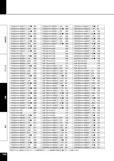 技術資料オプション索引付録FS35N***-WM01T◇◇EV◆FS35N***-WM02T◇◇ENFS35N***-WM02T◇◇EV◆FS35N***-WM04T◇◇ENFS35N***-WM04T◇◇EV◆FS35S***-WM01T◇◇ENFS35S***-WM01T◇◇EV◆FS35S***-WM02T◇◇ENFS35S***-WM02T◇◇EV◆FS35S***-WM04T◇◇ENFS35S***-WM04T◇◇EV◆FS-45-***-075FS45N***-MR08T◇◇TB◆FS45N***-MR08T◇◇TNFS45N***-MM02C◇JAB2FS45N***-MM02C◇JANFS45N***-MM02T◇◇TB◆FS45N***-MM02T◇◇TNFS45N***-MM04C◇JAB2FS45N***-MM04C◇JANFS45N***-MM04T◇◇TB◆FS45N***-MM04T◇◇TNFS45N***-WR08T◇◇ENFS45N***-WR08T◇◇EV◆FS45N***-WM02T◇◇ENFS45N***-WM02T◇◇EV◆FS45N***-WM04T◇◇ENFS45N***-WM04T◇◇EV◆FS45S***-WR08T◇◇ENFS45S***-WR08T◇◇EV◆FS45S***-WM02T◇◇ENFS45S***-WM02T◇◇EV◆FS45S***-WM04T◇◇ENFS45S***-WM04T◇◇EV◆FS-55-***-150FS-55-***-220FS55N***-MR08T◇◇TB◆FS55N***-MR08T◇◇TNFS55N***-MR15T◇◇TB◆FS55N***-MR15T◇◇TNFS55N***-MR22T◇◇TB◆FS55N***-MR22T◇◇TNFS55N***-MM04C◇JAB2FS55N***-MM04C◇JANFS55N***-MM04T◇◇TB◆FS55N***-MM04T◇◇TNFS55N***-WR08T◇◇ENFS55N***-WR08T◇◇EV◆FS55N***-WR15T◇◇ENFS55N***-WR22T◇◇EN387387387387387387387387387387387396369369370370369369370370369369388388388388388388388388388388388388397397371371371371371371372372371371389389389389FS55N***-WM04T◇◇ENFS55N***-WM04T◇◇EV◆FS55S***-WR08T◇◇ENFS55S***-WR08T◇◇EV◆FS55S***-WR15T◇◇ENFS55S***-WR22T◇◇ENFS55S***-WM04T◇◇ENFS55S***-WM04T◇◇EV◆FSS-25-***-010FSS-30-***-020FSS-35-***-040FSS-45-***-075FSS-55-***-150FSS-55-***-220G3F-18-***-010G3F-18-***-020G3F18N***-EM01T◇JTNG3F18N***-EM02T◇JTNG3F18N***-MM01C◇JAB2G3F18N***-MM01C◇JANG3F18N***-MM01T◇◇TB◆G3F18N***-MM01T◇◇TNG3F18N***-MM02C◇JAB2G3F18N***-MM02C◇JANG3F18N***-MM02T◇◇TB◆G3F18N***-MM02T◇◇TNG3F18N***-WM01T◇◇ENG3F18N***-WM01T◇◇EV◆G3F18N***-WM02T◇◇ENG3F18N***-WM02T◇◇EV◆G3F18S***-WM01T◇◇ENG3F18S***-WM01T◇◇EV◆G3F18S***-WM02T◇◇ENG3F18S***-WM02T◇◇EV◆G3F-22-***-010G3F-22-***-020G3F-22-***-040G3F22N***-EM01T◇JTNG3F22N***-EM02T◇JTNG3F22N***-EM04T◇JTNG3F22N***-MM01C◇JAB2G3F22N***-MM01C◇JANG3F22N***-MM01T◇◇TB◆G3F22N***-MM01T◇◇TNG3F22N***-MM02C◇JAB2G3F22N***-MM02C◇JANG3F22N***-MM02T◇◇TB◆G3F22N***-MM02T◇◇TNG3F22N***-MM04C◇JAB2G3F22N***-MM04C◇JAN389389389389389389389389403403404404405405177177151151959594949595949413513513513513513513513517717717715215215298989797989897979898G3F22N***-MM04T◇◇TB◆G3F22N***-MM04T◇◇TNG3F22N***-WM01T◇◇ENG3F22N***-WM01T◇◇EV◆G3F22N***-WM02T◇◇ENG3F22N***-WM02T◇◇EV◆G3F22N***-WM04T◇◇ENG3F22N***-WM04T◇◇EV◆G3F22S***-WM01T◇◇ENG3F22S***-WM01T◇◇EV◆G3F22S***-WM02T◇◇ENG3F22S***-WM02T◇◇EV◆G3F22S***-WM04T◇◇ENG3F22S***-WM04T◇◇EV◆G3F-28-***-010G3F-28-***-020G3F-28-***-040G3F-28-***-075G3F28N***-ER08T◇JTNG3F28N***-EM02T◇JTNG3F28N***-EM04T◇JTNG3F28N***-MR08T◇◇TB◆G3F28N***-MR08T◇◇TNG3F28N***-MM01C◇JAB2G3F28N***-MM01C◇JANG3F28N***-MM01T◇◇TB◆G3F28N***-MM01T◇◇TNG3F28N***-MM02C◇JAB2G3F28N***-MM02C◇JANG3F28N***-MM02T◇◇TB◆G3F28N***-MM02T◇◇TNG3F28N***-MM04C◇JAB2G3F28N***-MM04C◇JANG3F28N***-MM04T◇◇TB◆G3F28N***-MM04T◇◇TNG3F28N***-WR08T◇◇ENG3F28N***-WR08T◇◇EV◆G3F28N***-WM01T◇◇ENG3F28N***-WM01T◇◇EV◆G3F28N***-WM02T◇◇ENG3F28N***-WM02T◇◇EV◆G3F28N***-WM04T◇◇ENG3F28N***-WM04T◇◇EV◆G3F28S***-WR08T◇◇ENG3F28S***-WR08T◇◇EV◆G3F28S***-WM01T◇◇ENG3F28S***-WM01T◇◇EV◆G3F28S***-WM02T◇◇ENG3F28S***-WM02T◇◇EV◆G3F28S***-WM04T◇◇EN9797136136136136136136136136136136136136178178178178152152152100100101101100100101101100100101101100100137137137137137137137137137137137137137137137※型式の***には減速比が入ります。また、◇には電源電圧記号、◇◇には電源電圧・規格記号、◆にはブレーキ仕様が入ります。1260
