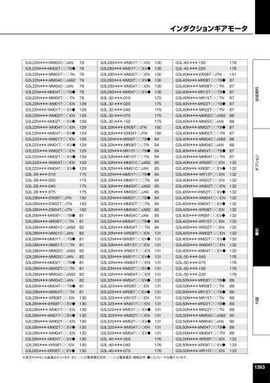 付録索引オプション技術資料インダクションギアモータG3L22N***-MM02C◇JANG3L22N***-MM02T◇◇TB◆G3L22N***-MM02T◇◇TNG3L22N***-MM04C◇JAB2G3L22N***-MM04C◇JANG3L22N***-MM04T◇◇TB◆G3L22N***-MM04T◇◇TNG3L22N***-WM01T◇◇ENG3L22N***-WM01T◇◇EV◆G3L22N***-WM02T◇◇ENG3L22N***-WM02T◇◇EV◆G3L22N***-WM04T◇◇ENG3L22N***-WM04T◇◇EV◆G3L22S***-WM01T◇◇ENG3L22S***-WM01T◇◇EV◆G3L22S***-WM02T◇◇ENG3L22S***-WM02T◇◇EV◆G3L22S***-WM04T◇◇ENG3L22S***-WM04T◇◇EV◆G3L-28-***-010G3L-28-***-020G3L-28-***-040G3L-28-***-075G3L28N***-ER08T◇JTNG3L28N***-EM02T◇JTNG3L28N***-EM04T◇JTNG3L28N***-MR08T◇◇TB◆G3L28N***-MR08T◇◇TNG3L28N***-MM01C◇JAB2G3L28N***-MM01C◇JANG3L28N***-MM01T◇◇TB◆G3L28N***-MM01T◇◇TNG3L28N***-MM02C◇JAB2G3L28N***-MM02C◇JANG3L28N***-MM02T◇◇TB◆G3L28N***-MM02T◇◇TNG3L28N***-MM04C◇JAB2G3L28N***-MM04C◇JANG3L28N***-MM04T◇◇TB◆G3L28N***-MM04T◇◇TNG3L28N***-WR08T◇◇ENG3L28N***-WR08T◇◇EV◆G3L28N***-WM01T◇◇ENG3L28N***-WM01T◇◇EV◆G3L28N***-WM02T◇◇ENG3L28N***-WM02T◇◇EV◆G3L28N***-WM04T◇◇ENG3L28N***-WM04T◇◇EV◆G3L28S***-WR08T◇◇ENG3L28S***-WR08T◇◇EV◆797878797978781291291291291291291291291291291291291751751751751501501508181828281818282818182828181130130130130130130130130130130G3L28S***-WM01T◇◇ENG3L28S***-WM01T◇◇EV◆G3L28S***-WM02T◇◇ENG3L28S***-WM02T◇◇EV◆G3L28S***-WM04T◇◇ENG3L28S***-WM04T◇◇EV◆G3L-32-***-010G3L-32-***-020G3L-32-***-040G3L-32-***-075G3L-32-***-150G3L32N***-ER08T◇JTNG3L32N***-EM04T◇JTNG3L32N***-MR08T◇◇TB◆G3L32N***-MR08T◇◇TNG3L32N***-MR15T◇◇TB◆G3L32N***-MR15T◇◇TNG3L32N***-MM01C◇JAB2G3L32N***-MM01C◇JANG3L32N***-MM01T◇◇TB◆G3L32N***-MM01T◇◇TNG3L32N***-MM02C◇JAB2G3L32N***-MM02C◇JANG3L32N***-MM02T◇◇TB◆G3L32N***-MM02T◇◇TNG3L32N***-MM04C◇JAB2G3L32N***-MM04C◇JANG3L32N***-MM04T◇◇TB◆G3L32N***-MM04T◇◇TNG3L32N***-WR08T◇◇ENG3L32N***-WR08T◇◇EV◆G3L32N***-WR15T◇◇ENG3L32N***-WM01T◇◇ENG3L32N***-WM01T◇◇EV◆G3L32N***-WM02T◇◇ENG3L32N***-WM02T◇◇EV◆G3L32N***-WM04T◇◇ENG3L32N***-WM04T◇◇EV◆G3L32S***-WR08T◇◇ENG3L32S***-WR08T◇◇EV◆G3L32S***-WR15T◇◇ENG3L32S***-WM01T◇◇ENG3L32S***-WM01T◇◇EV◆G3L32S***-WM02T◇◇ENG3L32S***-WM02T◇◇EV◆G3L32S***-WM04T◇◇ENG3L32S***-WM04T◇◇EV◆G3L-40-***-020G3L-40-***-040G3L-40-***-07513013013013013013017517517517517515015084848484858584848585848485858484131131131131131131131131131131131131131131131131131131176176176G3L-40-***-150G3L-40-***-220G3L40N***-ER08T◇JTNG3L40N***-MR08T◇◇TB◆G3L40N***-MR08T◇◇TNG3L40N***-MR15T◇◇TB◆G3L40N***-MR15T◇◇TNG3L40N***-MR22T◇◇TB◆G3L40N***-MR22T◇◇TNG3L40N***-MM02C◇JAB2G3L40N***-MM02C◇JANG3L40N***-MM02T◇◇TB◆G3L40N***-MM02T◇◇TNG3L40N***-MM04C◇JAB2G3L40N***-MM04C◇JANG3L40N***-MM04T◇◇TB◆G3L40N***-MM04T◇◇TNG3L40N***-WR08T◇◇ENG3L40N***-WR08T◇◇EV◆G3L40N***-WR15T◇◇ENG3L40N***-WR22T◇◇ENG3L40N***-WM02T◇◇ENG3L40N***-WM02T◇◇EV◆G3L40N***-WM04T◇◇ENG3L40N***-WM04T◇◇EV◆G3L40S***-WR08T◇◇ENG3L40S***-WR08T◇◇EV◆G3L40S***-WR15T◇◇ENG3L40S***-WR22T◇◇ENG3L40S***-WM02T◇◇ENG3L40S***-WM02T◇◇EV◆G3L40S***-WM04T◇◇ENG3L40S***-WM04T◇◇EV◆G3L-50-***-040G3L-50-***-075G3L-50-***-150G3L-50-***-220G3L50N***-MR08T◇◇TB◆G3L50N***-MR08T◇◇TNG3L50N***-MR15T◇◇TB◆G3L50N***-MR15T◇◇TNG3L50N***-MR22T◇◇TB◆G3L50N***-MR22T◇◇TNG3L50N***-MM04C◇JAB2G3L50N***-MM04C◇JANG3L50N***-MM04T◇◇TB◆G3L50N***-MM04T◇◇TNG3L50N***-WR08T◇◇ENG3L50N***-WR08T◇◇EV◆G3L50N***-WR15T◇◇EN176176151878787878787888887878888878713213213213213213213213213213213213213213213213217617617617689898989898990908989133133133※型式の***には減速比が入ります。また、◇には電源電圧記号、◇◇には電源電圧・規格記号、◆にはブレーキ仕様が入ります。1263