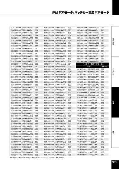 付録索引オプション技術資料IPMギアモータ/バッテリー電源ギアモータG3L32N***□-PD15NVTB2G3L32N***□-PD15NVTNG3L32N***□-PM01NVTB2G3L32N***□-PM01NVTNG3L32N***□-PM02NVTB2G3L32N***□-PM02NVTNG3L32N***□-PM04NVTB2G3L32N***□-PM04NVTNG3L32N***□-VD08NVENG3L32N***□-VD08NVEV2G3L32N***□-VD15NVENG3L32N***□-VM01NVENG3L32N***□-VM01NVEV2G3L32N***□-VM02NVENG3L32N***□-VM02NVEV2G3L32N***□-VM04NVENG3L32N***□-VM04NVEV2G3L40N***□-PD08NVTB2G3L40N***□-PD08NVTNG3L40N***□-PD15NVTB2G3L40N***□-PD15NVTNG3L40N***□-PD22NVTB2G3L40N***□-PD22NVTNG3L40N***□-PM02NVTB2G3L40N***□-PM02NVTNG3L40N***□-PM04NVTB2G3L40N***□-PM04NVTNG3L40N***□-VD08NVENG3L40N***□-VD08NVEV2G3L40N***□-VD15NVENG3L40N***□-VD22NVENG3L40N***□-VM02NVENG3L40N***□-VM02NVEV2G3L40N***□-VM04NVENG3L40N***□-VM04NVEV2G3L50N***□-PD08NVTB2G3L50N***□-PD08NVTNG3L50N***□-PD15NVTB2G3L50N***□-PD15NVTNG3L50N***□-PD22NVTB2G3L50N***□-PD22NVTNG3L50N***□-PM04NVTB2G3L50N***□-PM04NVTNG3L50N***□-VD08NVENG3L50N***□-VD08NVEV2G3L50N***□-VD15NVENG3L50N***□-VD22NVENG3L50N***□-VM04NVENG3L50N***□-VM04NVEV2H2L22#***□-PM01NVTB2664664664664664664664664680680680680680680680680680665665665665665665665665665665681681681681681681681681666666666666666666666666682682682682682682698H2L22#***□-PM01NVTNH2L22#***□-PM02NVTB2H2L22#***□-PM02NVTNH2L22#***□-VM01NVENH2L22#***□-VM01NVEV2H2L22#***□-VM02NVENH2L22#***□-VM02NVEV2H2L28#***□-PM01NVTB2H2L28#***□-PM01NVTNH2L28#***□-PM02NVTB2H2L28#***□-PM02NVTNH2L28#***□-PM04NVTB2H2L28#***□-PM04NVTNH2L28#***□-VM01NVENH2L28#***□-VM01NVEV2H2L28#***□-VM02NVENH2L28#***□-VM02NVEV2H2L28#***□-VM04NVENH2L28#***□-VM04NVEV2H2L32#***□-PD08NVTB2H2L32#***□-PD08NVTNH2L32#***□-PM01NVTB2H2L32#***□-PM01NVTNH2L32#***□-PM02NVTB2H2L32#***□-PM02NVTNH2L32#***□-PM04NVTB2H2L32#***□-PM04NVTNH2L32#***□-VD08NVENH2L32#***□-VD08NVEV2H2L32#***□-VM01NVENH2L32#***□-VM01NVEV2H2L32#***□-VM02NVENH2L32#***□-VM02NVEV2H2L32#***□-VM04NVENH2L32#***□-VM04NVEV2H2L40#***□-PD08NVTB2H2L40#***□-PD08NVTNH2L40#***□-PD15NVTB2H2L40#***□-PD15NVTNH2L40#***□-PM02NVTB2H2L40#***□-PM02NVTNH2L40#***□-PM04NVTB2H2L40#***□-PM04NVTNH2L40#***□-VD08NVENH2L40#***□-VD08NVEV2H2L40#***□-VD15NVENH2L40#***□-VM02NVENH2L40#***□-VM02NVEV2H2L40#***□-VM04NVENH2L40#***□-VM04NVEV2698698698704704704704698698698698698698704704704704704704699699699699699699699699705705705705705705705705700700700700700700700700706706706706706706706H2L50#***□-PD08NVTB2H2L50#***□-PD08NVTNH2L50#***□-PD15NVTB2H2L50#***□-PD15NVTNH2L50#***□-PD22NVTB2H2L50#***□-PD22NVTNH2L50#***□-PM04NVTB2H2L50#***□-PM04NVTNH2L50#***□-VD08NVENH2L50#***□-VD08NVEV2H2L50#***□-VD15NVENH2L50#***□-VD22NVENH2L50#***□-VM04NVENH2L50#***□-VM04NVEV2701701701701701701701701707707707707707707バッテリー電源ギアモータ型式APG22N***-SDM080L4ABAPG22N***-SDM080L4ANAPG22N***-SDW080L4ABAPG22N***-SDW080L4ANAPG28N***-SDM080L4ABAPG28N***-SDM080L4ANAPG28N***-SDW080L4ABAPG28N***-SDW080L4ANF3S30N***-SDM080L4ABF3S30N***-SDM080L4ANF3S30S***-SDW080L4ABF3S30S***-SDW080L4ANVF3FC18#-***N100L1AVF3FC18#-***N100L2AVF3FC18#-***N100L4AVF3FC22#-***N200L2AVF3FC22#-***N200L4AVF3FC28#-***N200L2AVF3FC28#-***N200L4AVF3FC28#-***N400L2AVF3FC28#-***N400L4AVF3FC32#-***N400L2AVF3FC32#-***N400L4AVF3FD18#-***N100L1AVF3FD18#-***N100L2AVF3FD18#-***N100L4AVF3FD22#-***N200L2AVF3FD22#-***N200L4AVF3FD28#-***N200L2AVF3FD28#-***N200L4AVF3FD28#-***N400L2AVF3FD28#-***N400L4AVF3FD32#-***N400L2AVF3FD32#-***N400L4A掲載ページ888888888888889889889889914914914914910910910911911912912912912913913910910910911911912912912912913913※型式の#には軸区分記号、***には減速比が入ります。また、□にはバックラッシ精度が入ります。1271